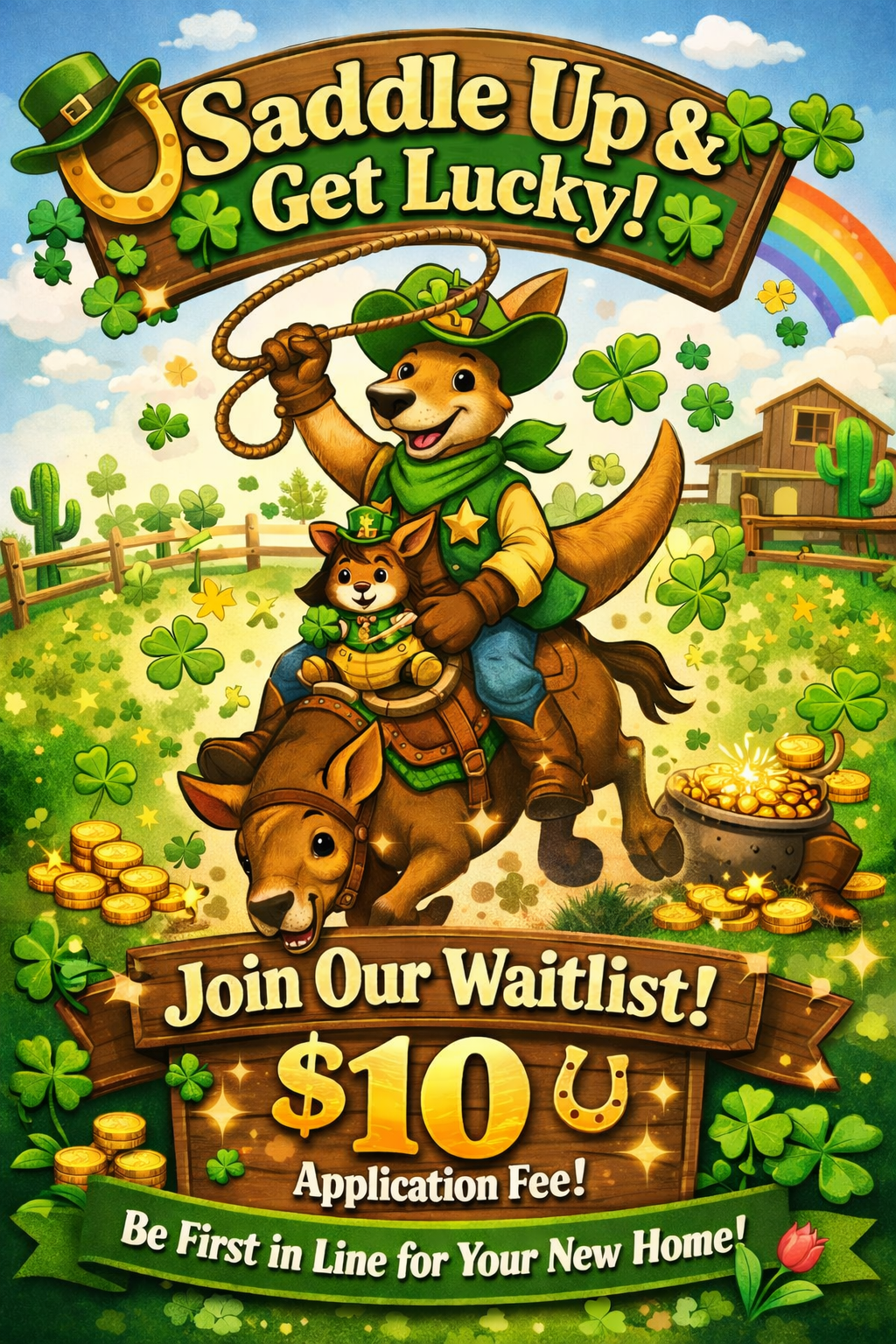 β¨ Join our lucky waitlist for just a $10 application fee! π°π Be first in line to rope in a home youβll love when it becomes available. π Move-in dates will follow availability π Sign up today and ride into your new home this spring! π·π